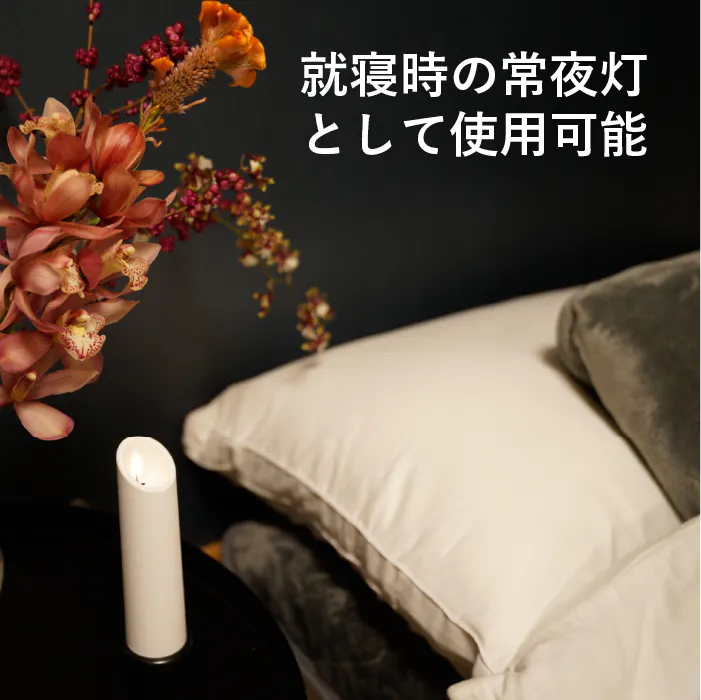 また、長時間の点灯が可能なので部屋の電気を消した後、まだ少し灯りがほしい時の常夜灯にもなってくれます。就寝時の灯りとしておすすめです。