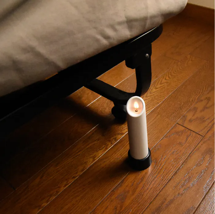 そんな風に諦めているという方は、まず一度枕元にNEW Chandelleを置いてみてください!NEW Chandelleを付けた状態で枕元に置いて部屋の電気を消せば、真っ暗闇の中ベッドまで行くこともなくなります。
