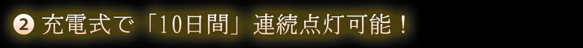 ②充電式で240時間まで連続点灯可能!