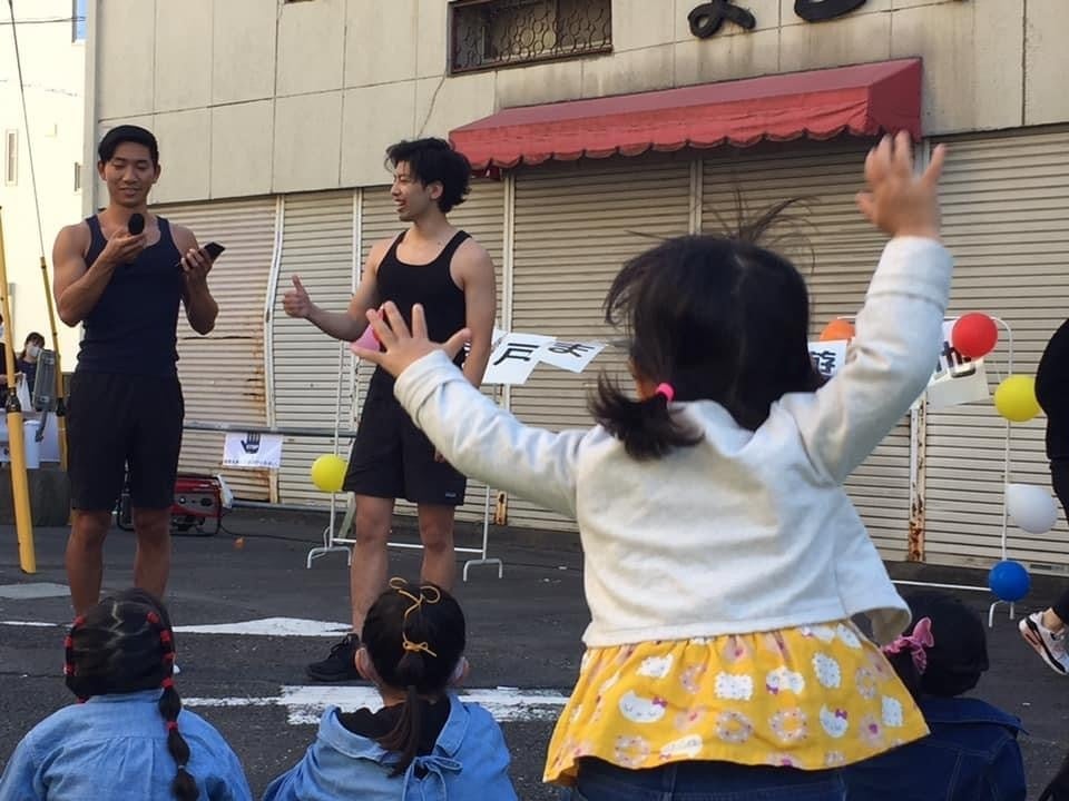 (地元の祭りで筋肉体操を披露したワンシーンです)