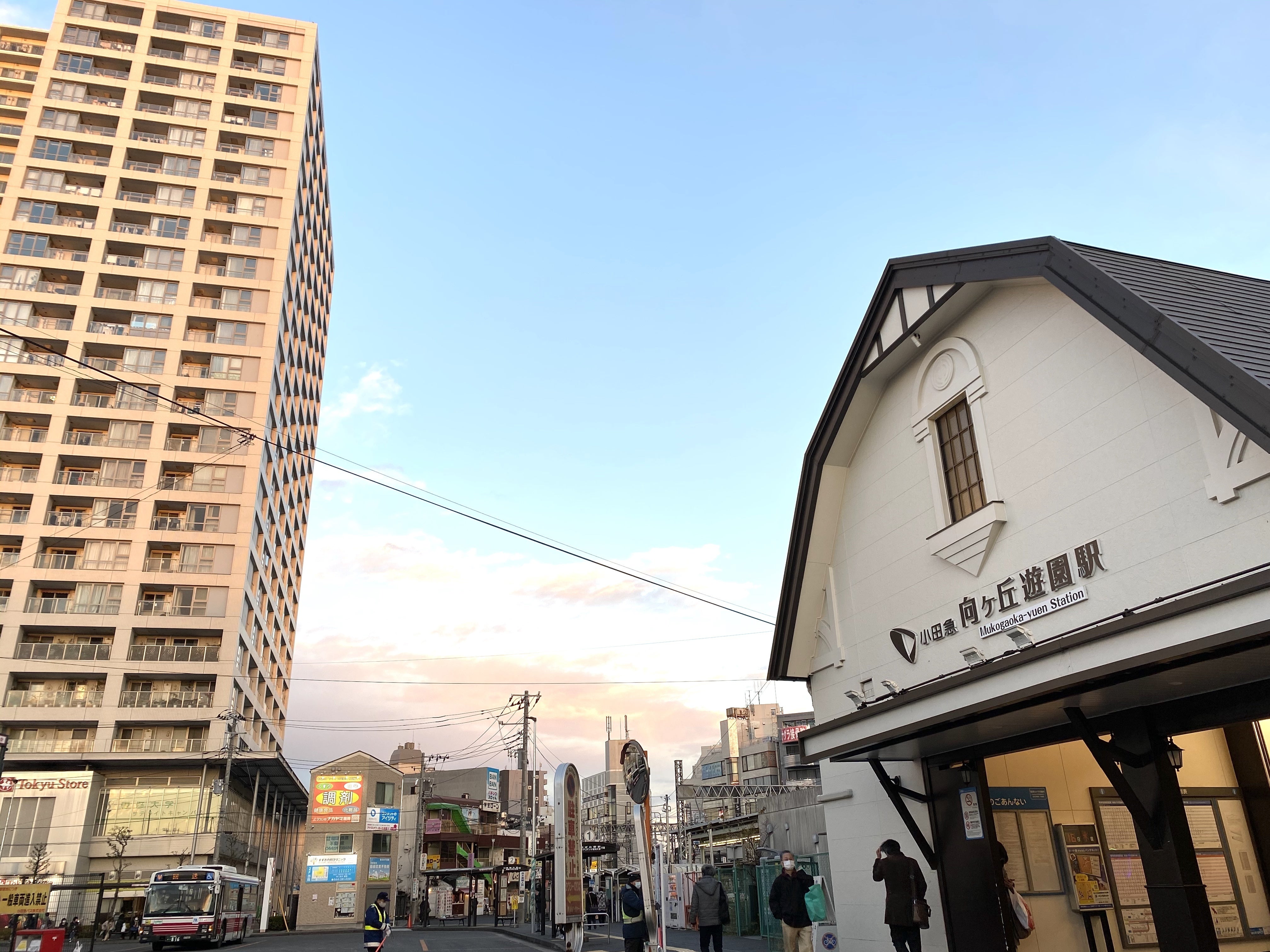 (カフェの最寄駅北口の風景。ストイックカフェは左のタワーマンション1Fカフェドクレールにて間借り営業します。※画像内バスが停車している後あたりです。)
