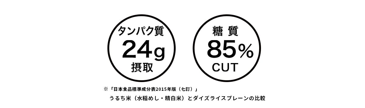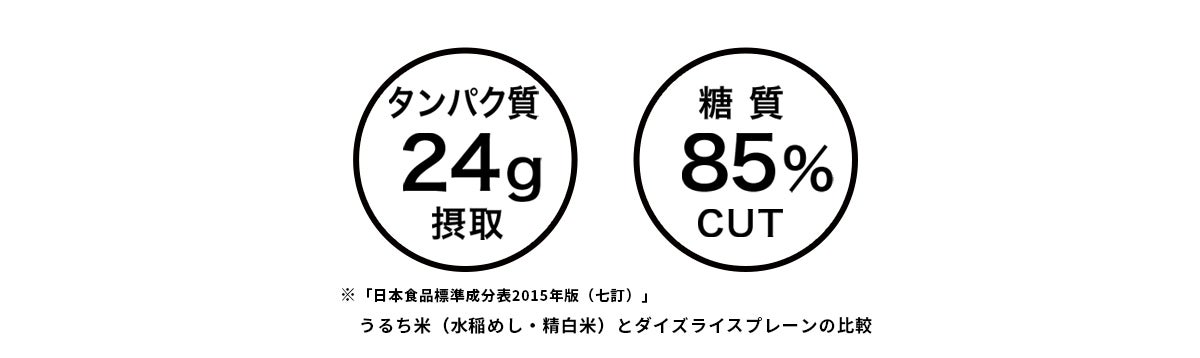 ※「日本食品標準成分表2015年版(七訂)」 うるち米(水稲めし・精白米)とダイズライスプレーンとの比較