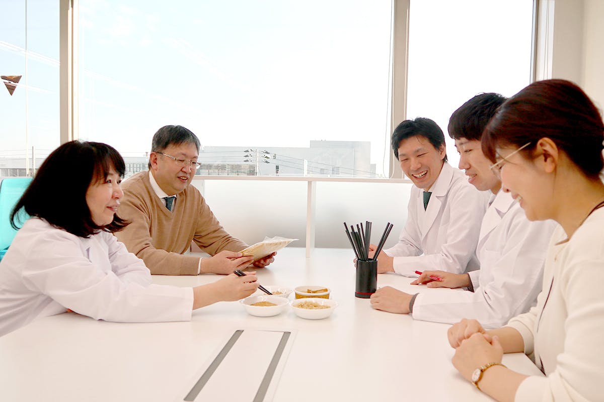 毎日食べてもらうことを考えた主食ですから、「継続できる美味しさ」が絶対!「大豆の存在感とごはんらしさ」の両立という難しい壁を突破することが大事なポイントでした。最も苦労したのは「におい」と「食感」ですね。大豆を原料とした「ライス風」って世の中に普及していないので「正解」がないんです。まずはチームで硬さ・弾力といった食感、香りや風味といった食味で「目指すべきところ」を定めることから始め、仮説・検証を繰り返しました。