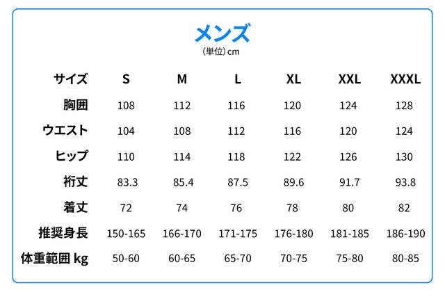 下図のサイズ表と照らし合わせて、ご自身のサイズ実測値と近いものをお選びください。