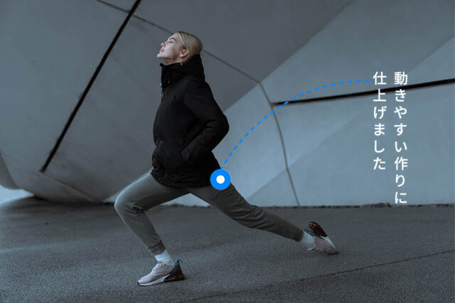 レディース用のSサイズはわずか660g、軽くて薄いのに圧倒的な超防寒を実現しました。