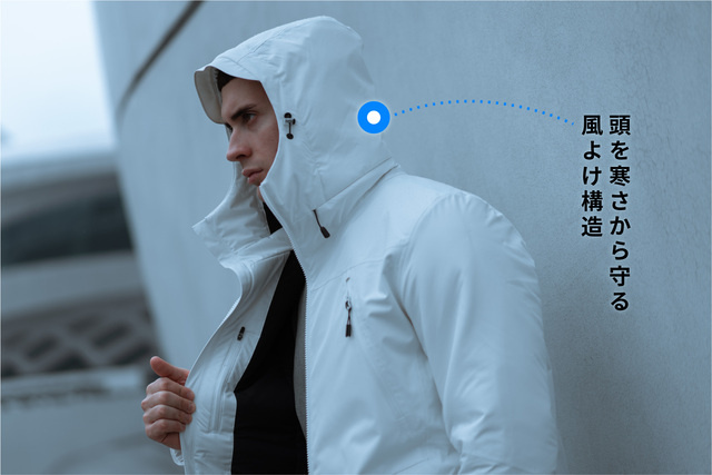 A1:ボレアスジャケットは全体に2mmのエアロゲルを入っていますので、腕や胸側、フード部分も暖かくしてくれます。