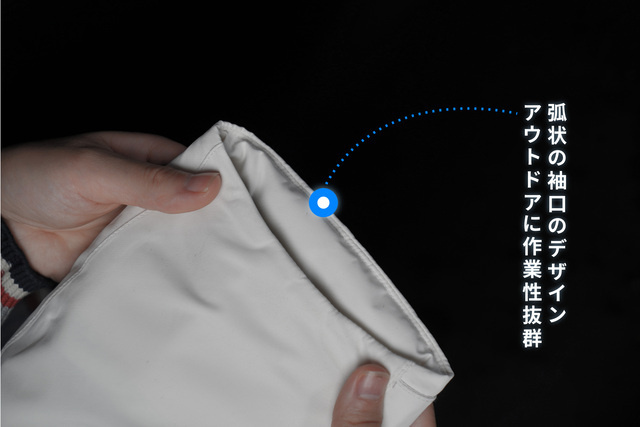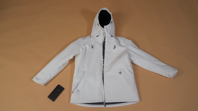 その結果、たった2mmの素材で-40℃の環境下でも抜群の保温効果が得られるようになりました。ボレアスジャケットは全体に2mmのエアロゲルを入っていますので、腕や胸側、フード部分も暖かくしてくれます。