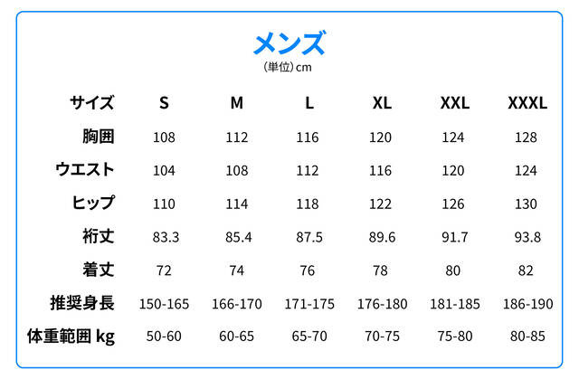 ※ボレアスジャケットはぴったりしたサイズ設計です。サイズは身長を基準に決めることをおすすめします。