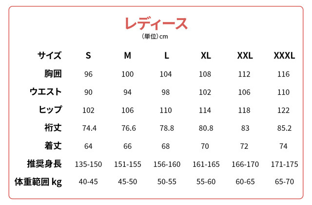 下図のサイズ表と照らし合わせて、ご自身のサイズ実測値と近いものをお選びください。