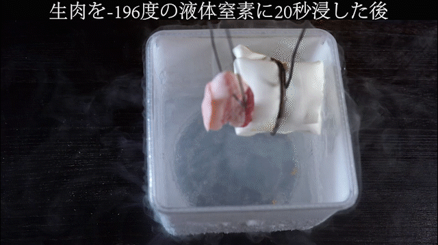 左は生肉、右は生肉を包んだエアロゲル。