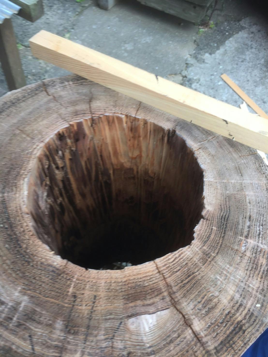 巣箱は対馬独特の蜂洞と呼ばれる丸太のくり抜きで作成します。