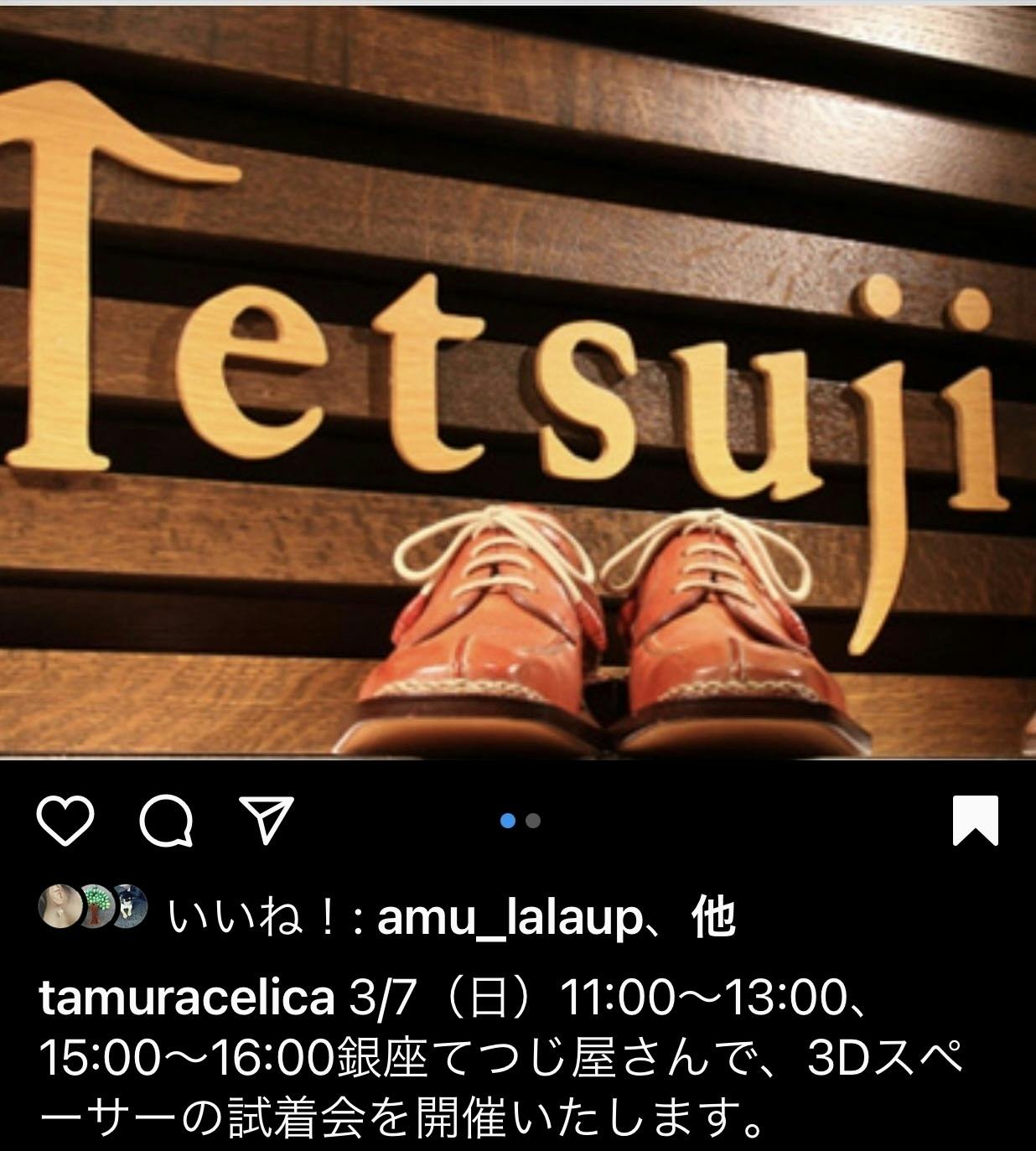 2021/03/07 23:13本日は、銀座のオーダーメイド靴店紳士靴のバイブルの監修もなされたオーダーシューズ界で有名な上田哲司さんに3Dスペーサーのコンセプトに大変ご賛同頂き、銀座一丁目にある上田さんのサロン「てつじ屋」にて、3Dスペーサーの体験会を実施させて頂きました。特に足と靴のアンマッチ問題にお詳しい靴業界に携わっている方も含めて、数名の方にご試着頂きました。片足だけはめて、数メートル歩行して頂き、左右の差の感想を頂きました。● カパカパしなくなった!● 地面からの衝撃が緩和されてる!● 疲れにくい気がする!● かかとに靴がついてから初めての感覚!と、とてもご好評を頂きました。どうにかして、これを世に広めたい!と、広める方法をあれこれ談義してくださったりも。。。、あと1時間で終了、オールorナッシングでの挑戦です。なので、目標未達だとせっかくのご支援ぎ無かったことに!皆さん、どうかどうか足補正の実現に向けてご支援のほどよろしくお願いします。 もっと見る