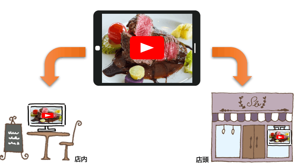 店舗のopen時、店内又は店外に画像(10秒)の支援者様の広告を提示します。
