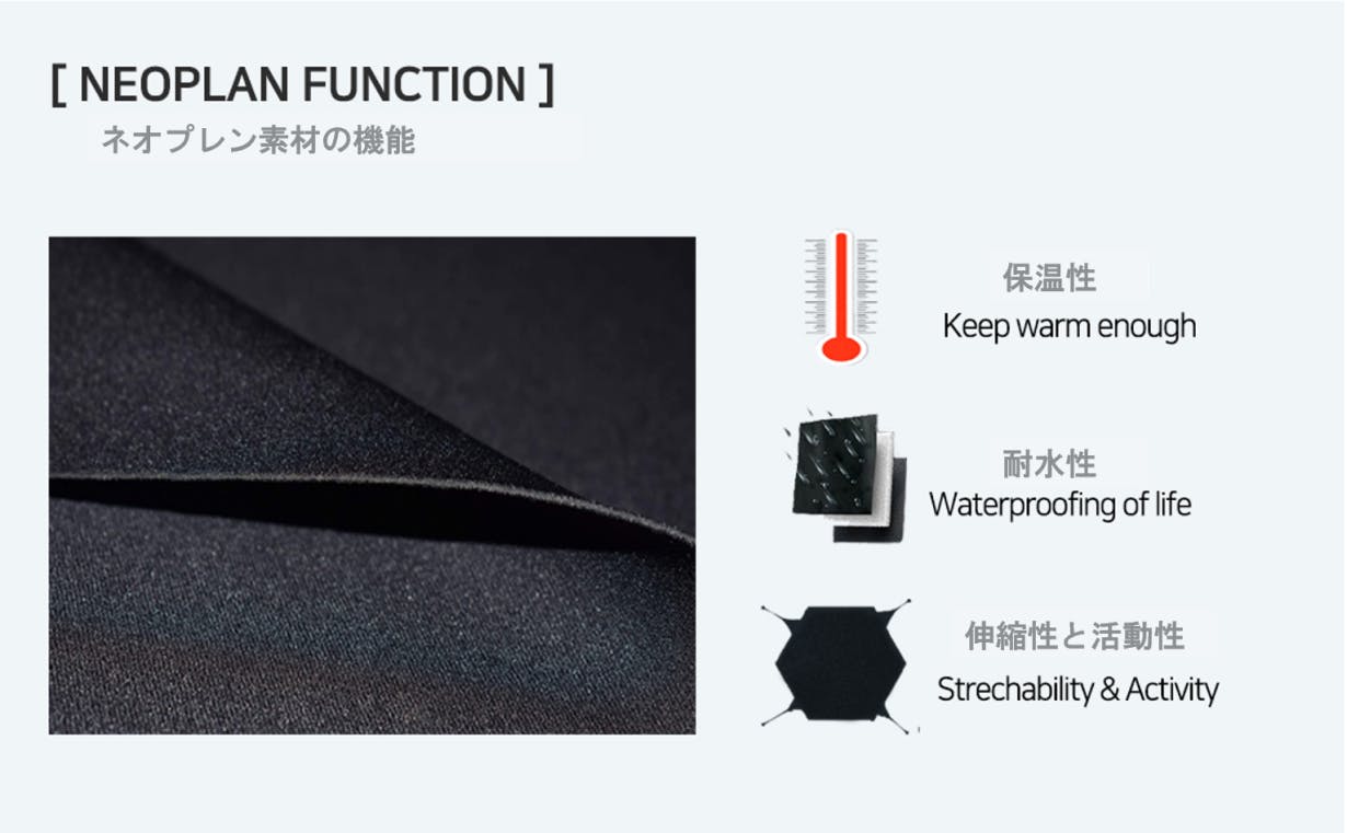 ウエットスーツの生地を使用することで体温の維持機能を強化!