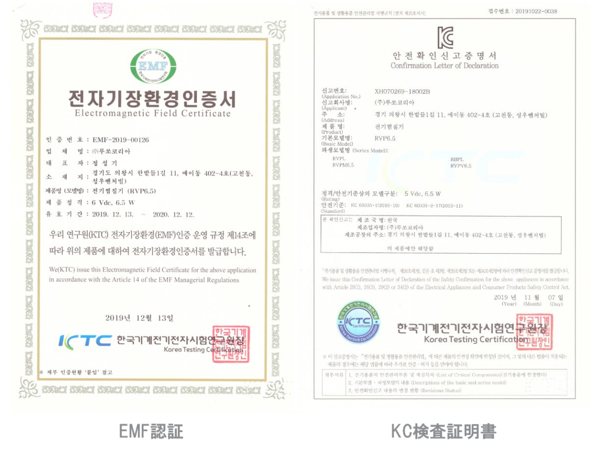 韓国機械電気電子試験研究院と国立電波研究院で安全性検査を受けおります。