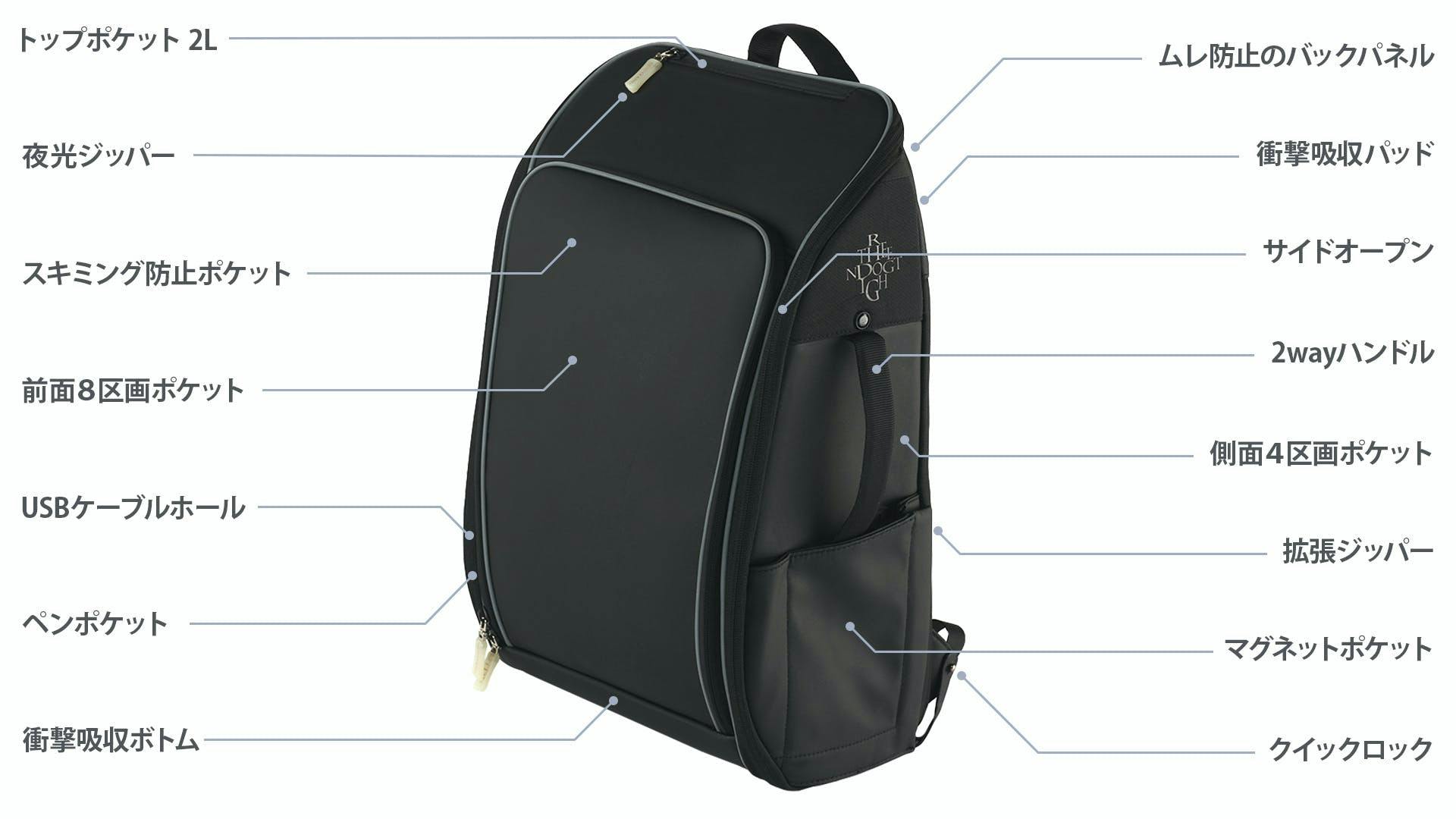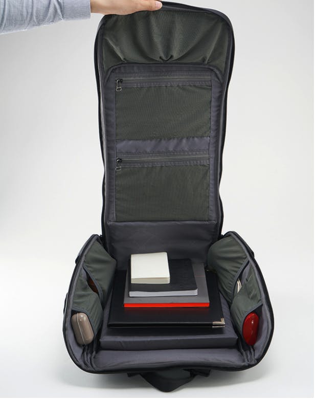 スーツにキマる!27個の収納を備えた180°オープン可能なBackPack