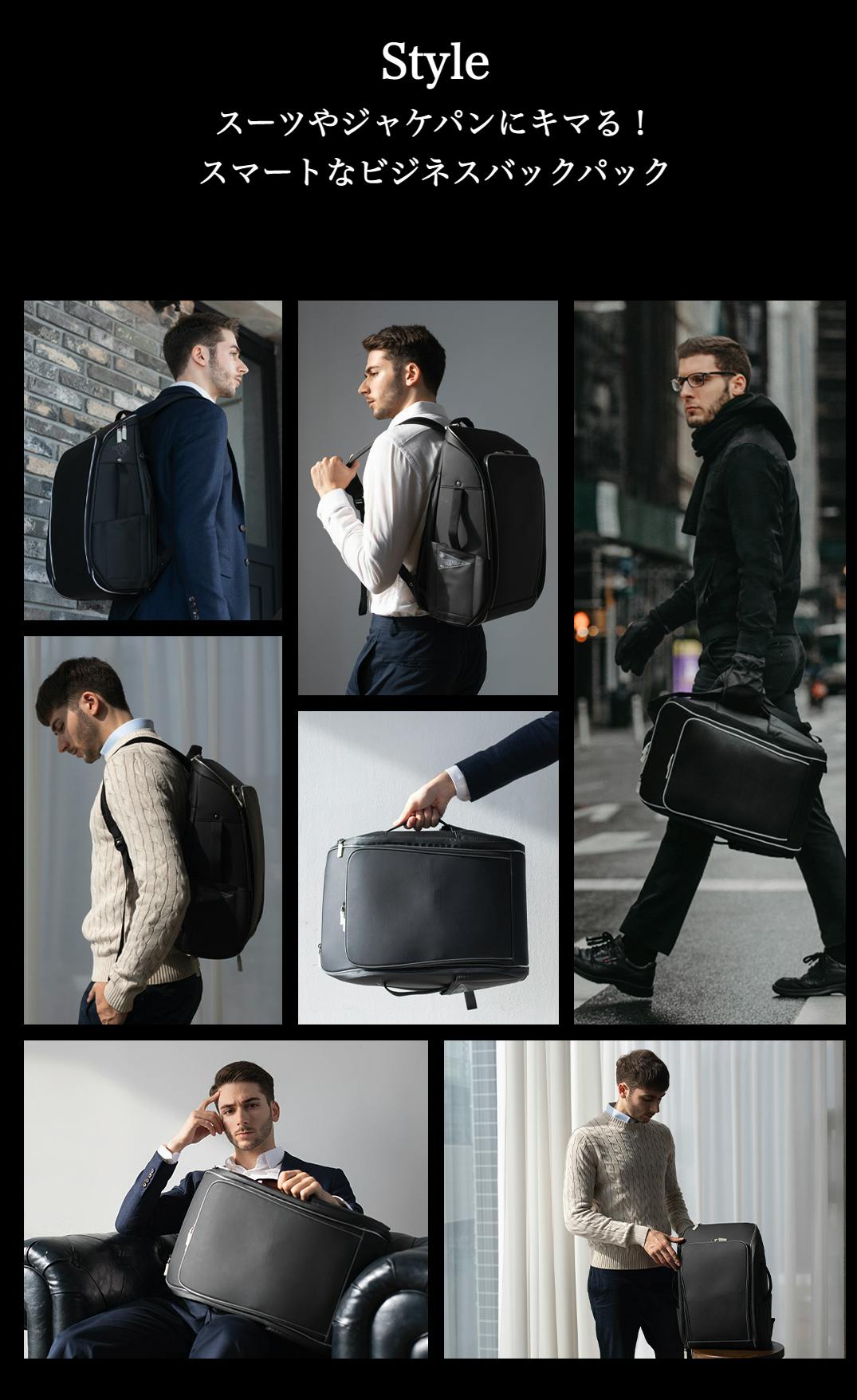 スマートなデザインなので、どんなビジネスシーンで使用しても"デキる男"を演出します。また電車や客先では手提げにしてブリーフケースのように活用してみてください。TPOを守れば、周囲に不快感を与える事なくビジネスリュックを使用できます。