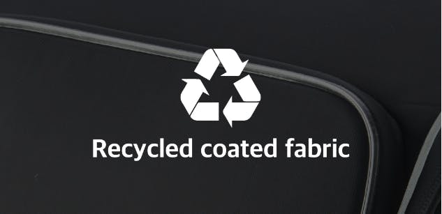 環境への取組みとして、再生可能なように開発された「Recycled coated fabric」を使用して製品を作っています。