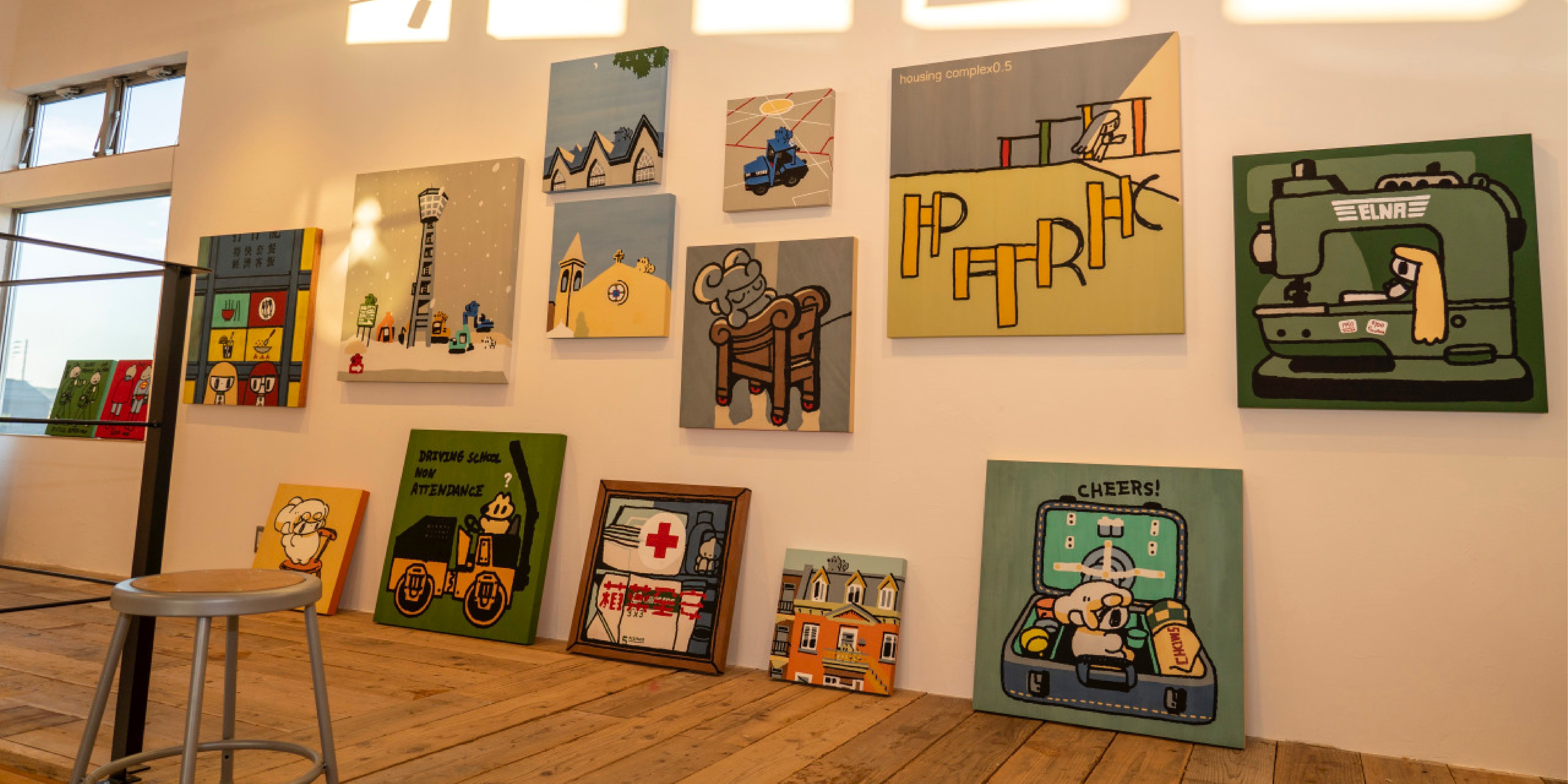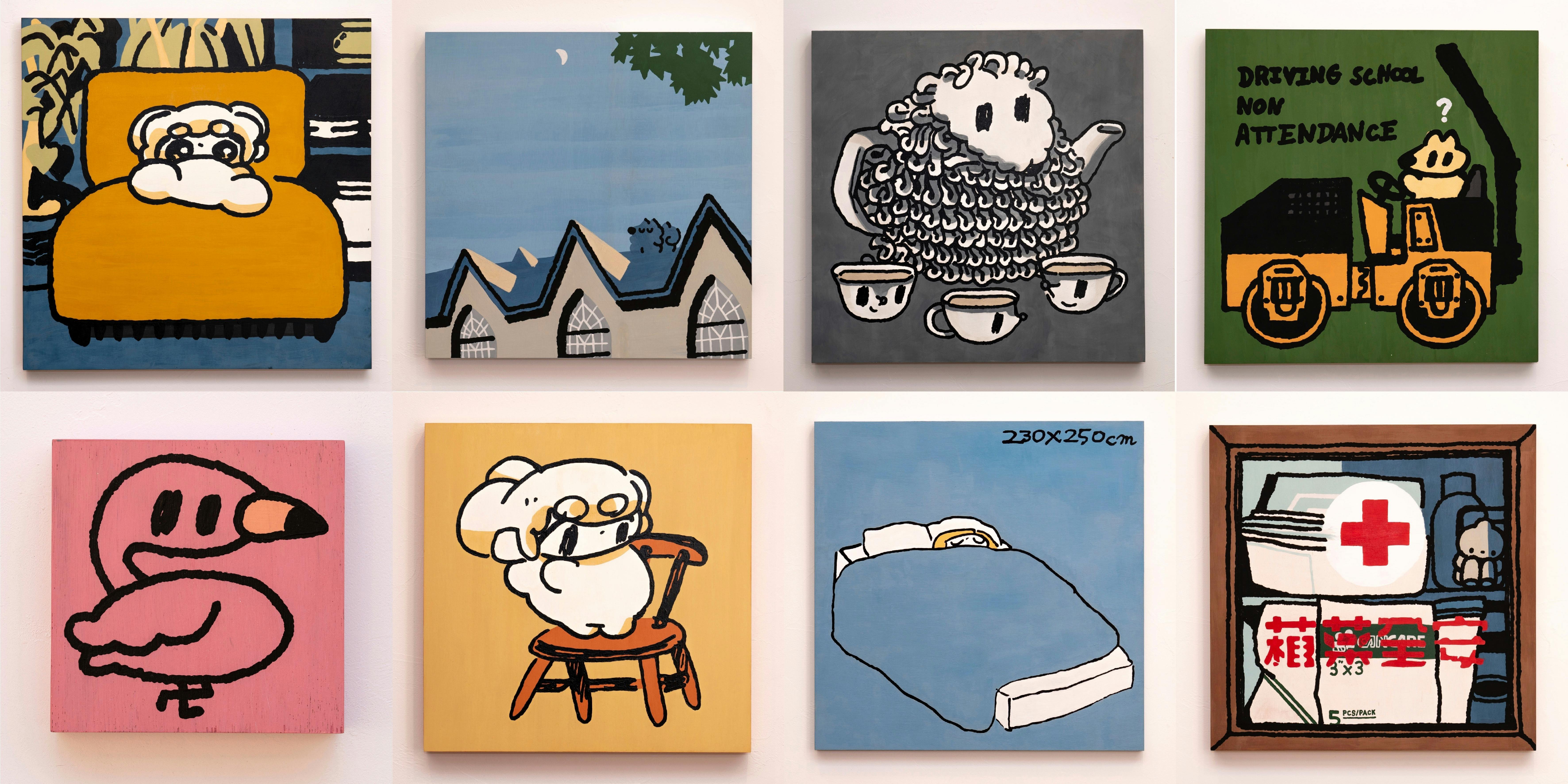絵画作品では、木製の支持体にミルクペイントという家具用の塗料を使用して制作しているため、誰かの生活の中に、遭遇し、溶け込んでゆく、家具の様な作品が特徴的です。