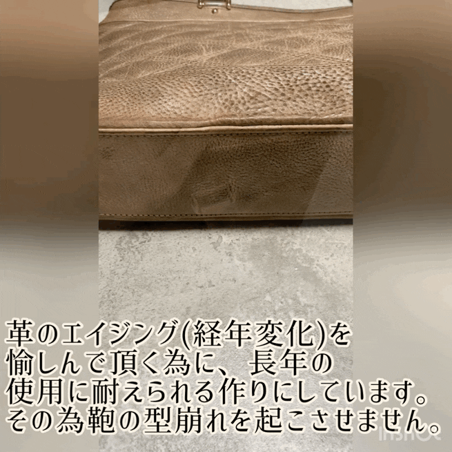 この鞄には様々なこだわりが詰め込んであります。この製品にしか出せない革の魅力を長年掛けて存分に楽しんで頂き、あなただけのヴィンテージバッグに育てて下さい。