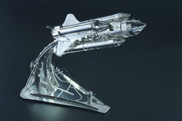 このモデルは4つの部分(スペースシャトル本体、ロケットブースター、燃料タンク、スタンド)で構成されています。
