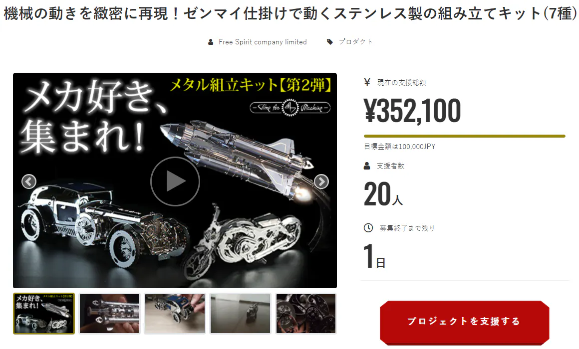 Time for Machine第2弾のプロジェクトも残り1日となりました。(3月30日23時59分まで)