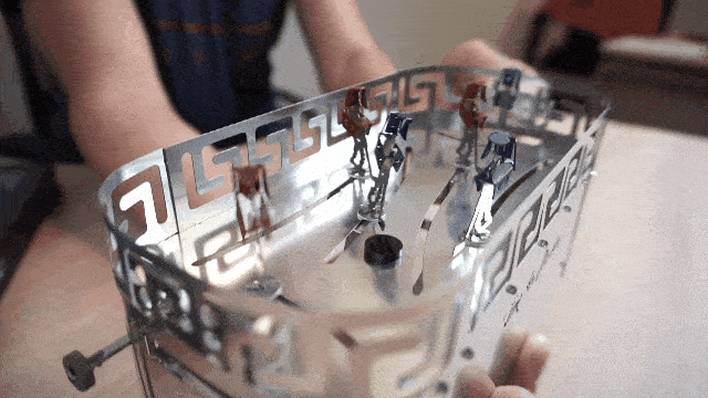 燃料タンクは専用のキーで巻き上げることで回転。トリガーレバーを押すと、ゆっくりと回り始めます。