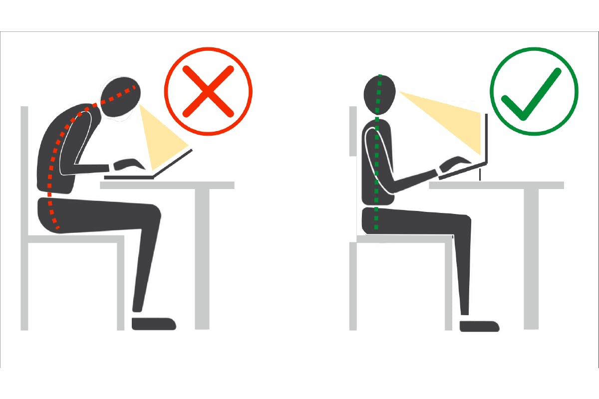 視線が上がると、デバイスのディスプレイやキーボードを覗き込む必要がないため、自然とシャキッとした姿勢に。
