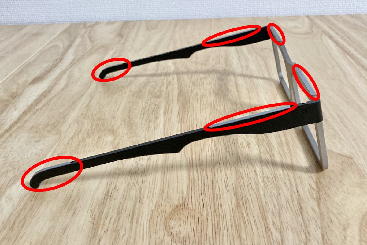 デバイスと机に接触する部分に、すべり止めのシリコンゴムを採用し、傷付けずに、グラグラ防止
