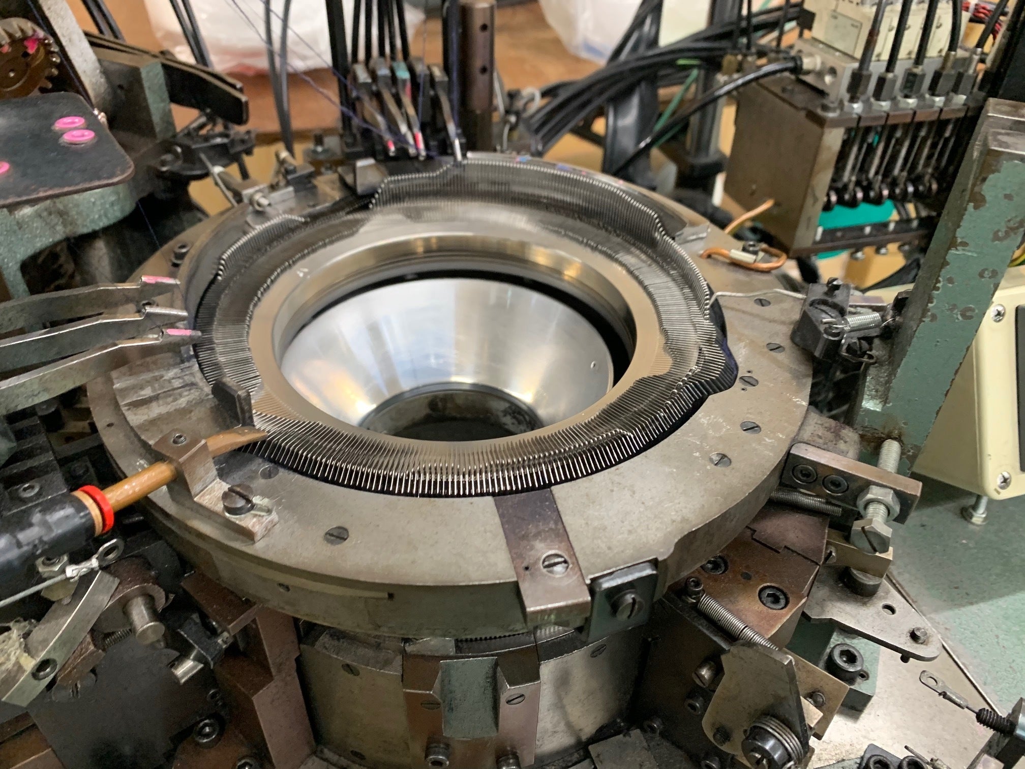 群を抜いた保温性と優れた透湿性をもつ健康繊維メディロンを使用した肌着、サポーター、靴下をはじめ、手作業でしか出来ない特殊裁断や機能編みなど、保温だけにこだわらないものづくり。ハヤシ・ニット独自の編み機に工夫と改良を加え、研究し、その実用化に日々努力しております。