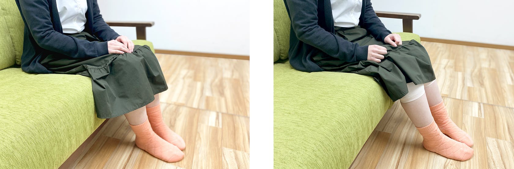 市販のひざを保温するサポーターと違い履くタイプになっているためズレて不快な思いをすることなく、快適に過ごすことができます。