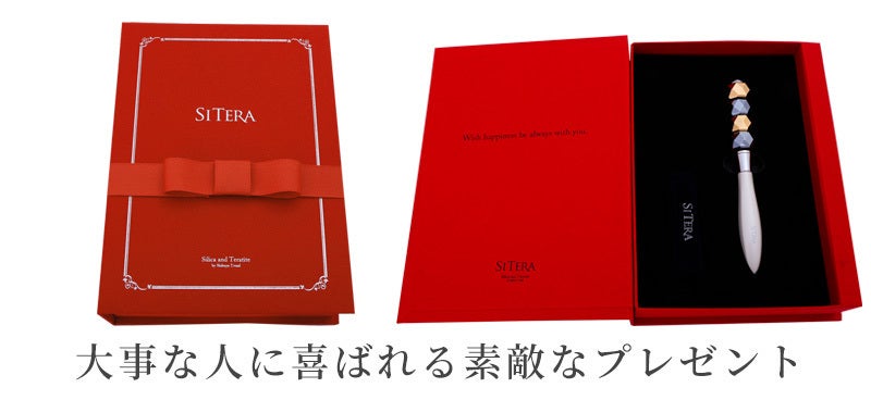 水晶や珪石・石英等に含まれるケイ素成分のみを凝縮して99.9999%高純度のケイ素鉱石になったのでsi teraの商品名にしました。鉱石からはテラ ヘルツ波を常に放射しているため表情筋をコロコロするだけで肌内の水分と共振共鳴して、むくみなどがほぐれ、リフトアップや目元がパッチリ開く感じを体感することができます。お湯と水を活用することでさらに効果を体感することが見込めます