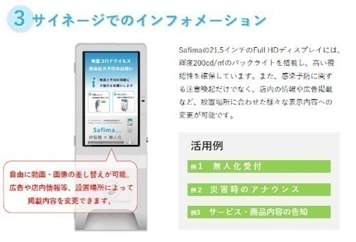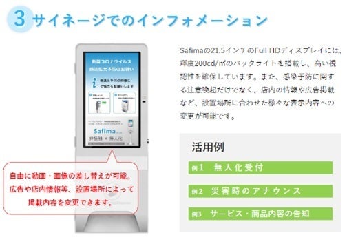 ・様々な情報やインフォメーションを流したり感染防止のためのインフォメーションを流せます。