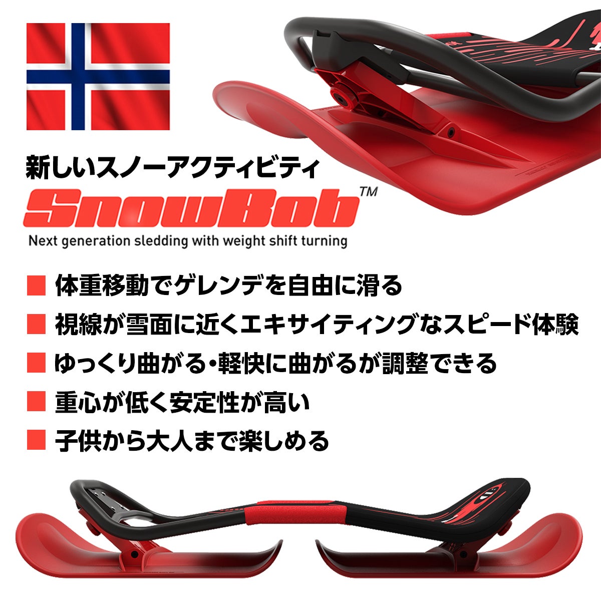 ・スキー場でのご利用の際は、SNOWBOBでの走行が可能か事前にスキー場にご確認ください。