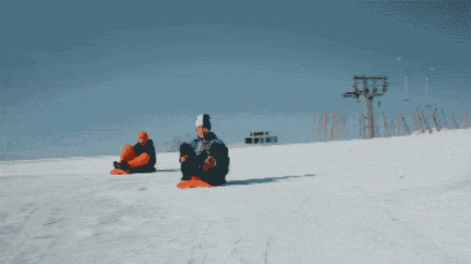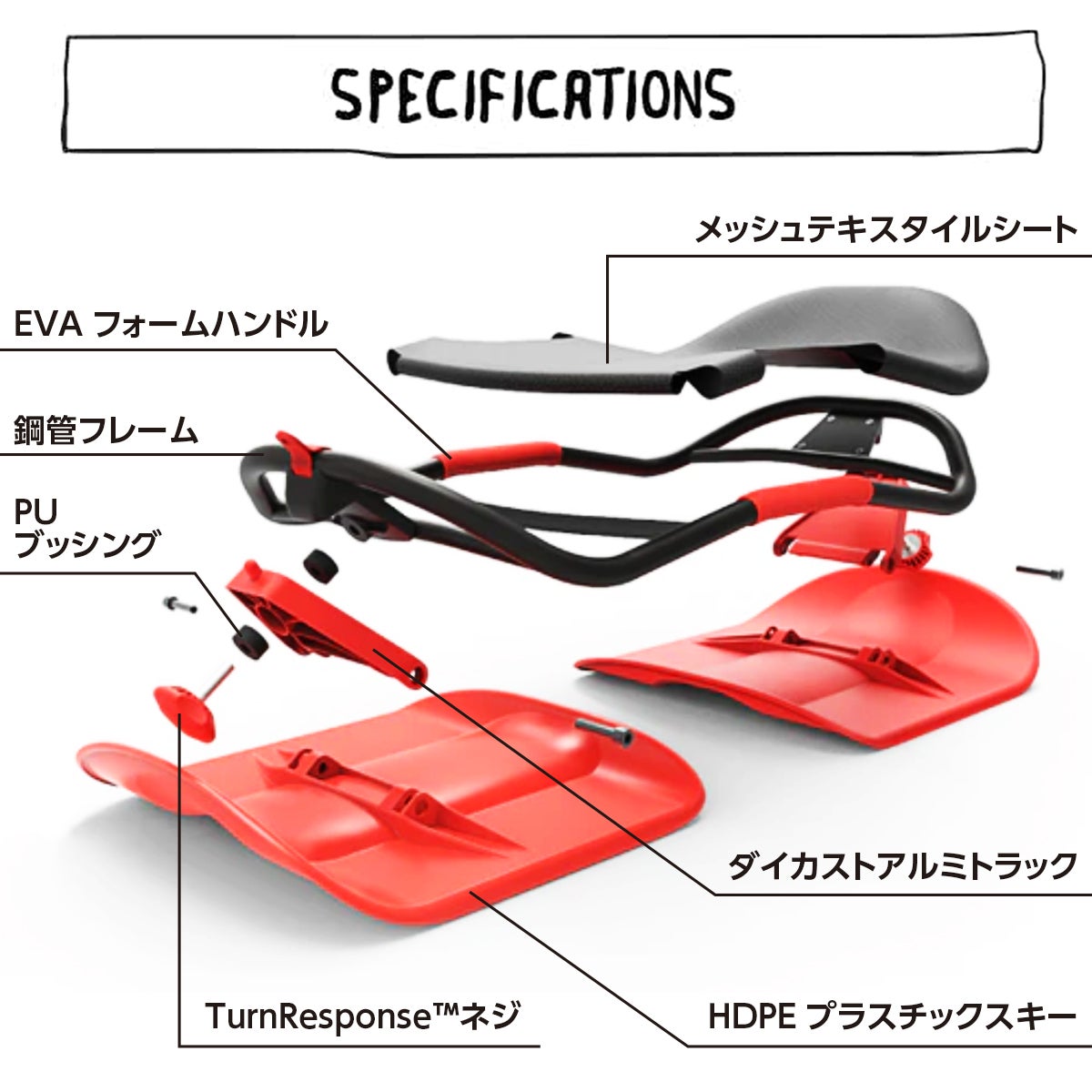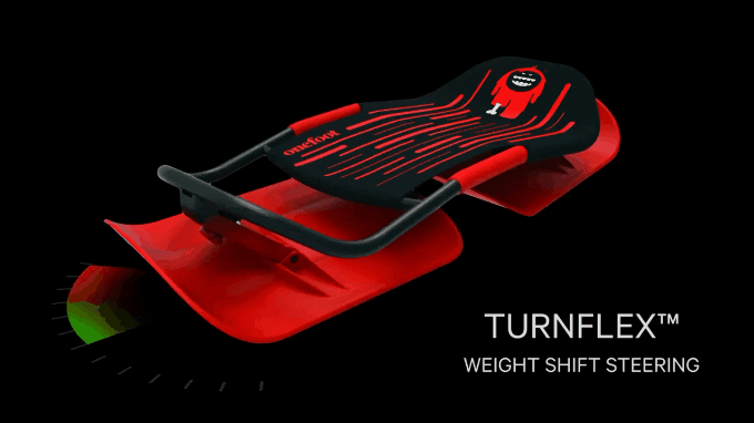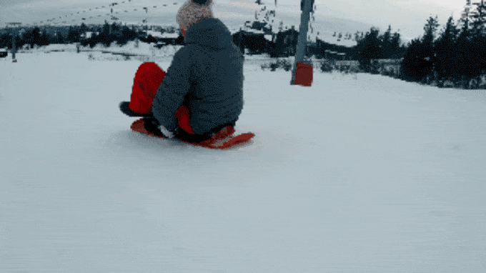 体重移動で舵をとりゲレンデを自由に滑ることができるソリ!