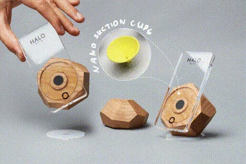 スマホをHALOに置くだけで一瞬でピタッとくっつきます。