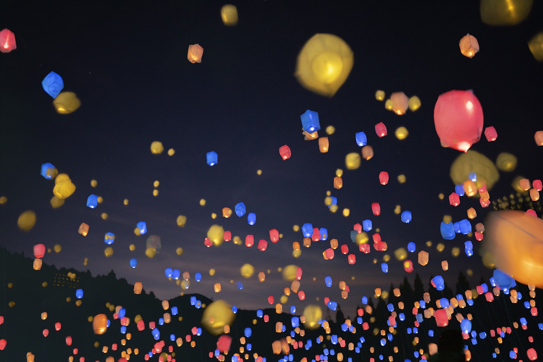 祝意の思いを込めた300個の光る風船を用意。1/10(日)17:00から、風船を浮かべスカイランタン風な演出を実施。屋外でコロナにも配慮しながら、成人の日のひとときの思い出を作れるようにしたいと思います。