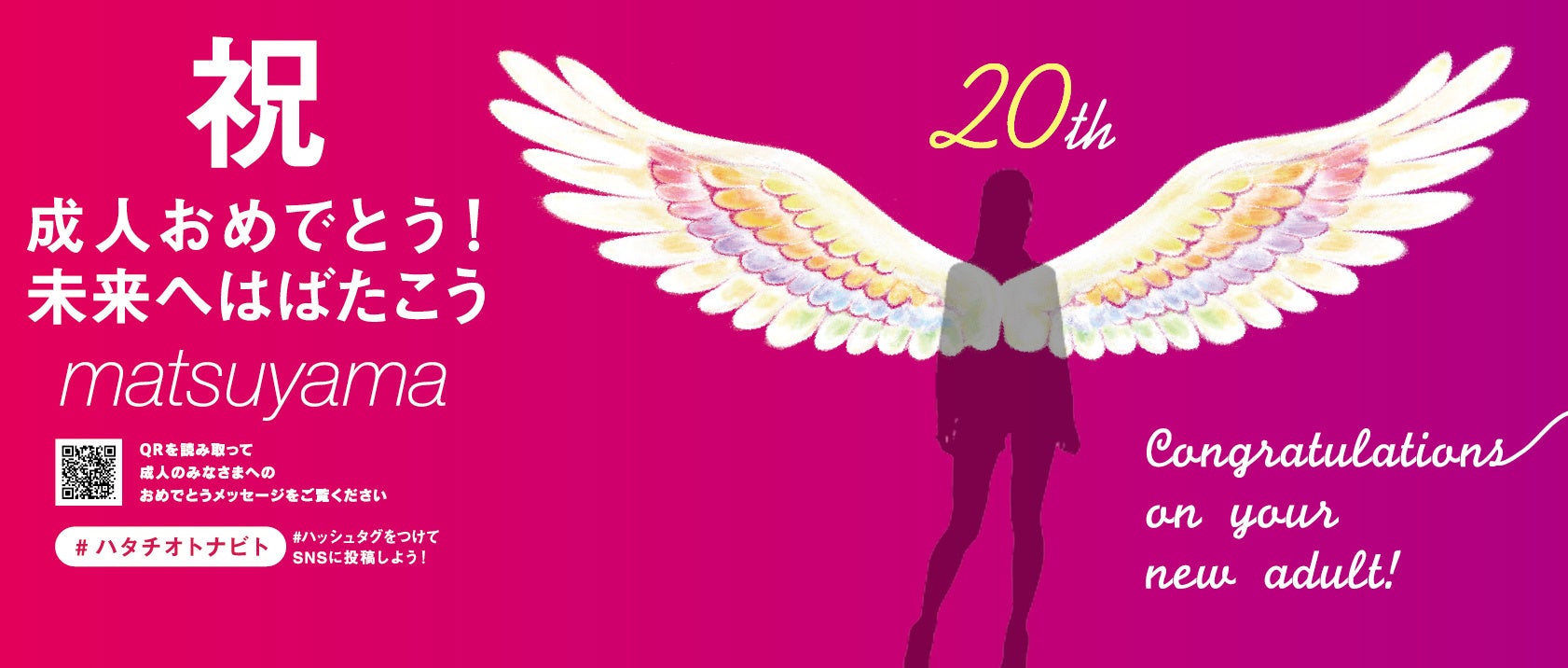 2021年1月に愛媛県下20市町各地で開催予定の成人式が中止・延期となる中で迎える『成人の日』。このような状況でも、ともに地域に暮らす仲間として何かできることはないかと考え、『地域をあげて、新成人のみなさんへあたたかい祝意を伝えたい』と思い、プロジェクトと企画しました。