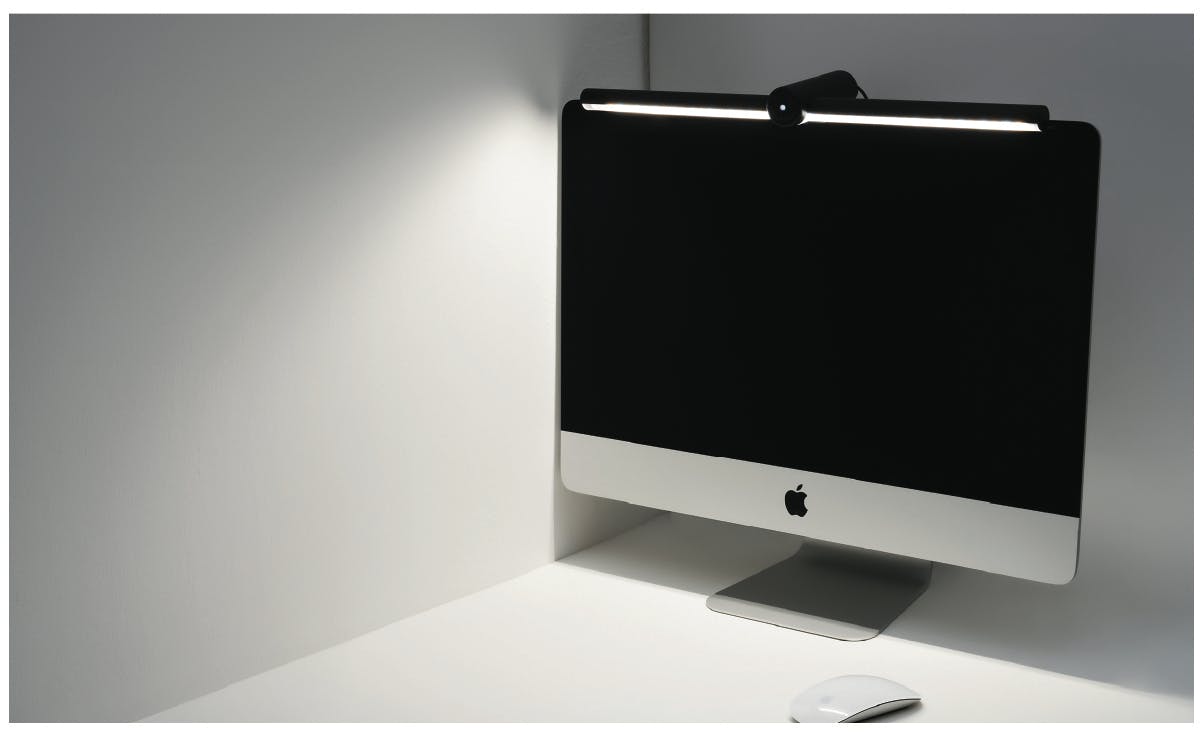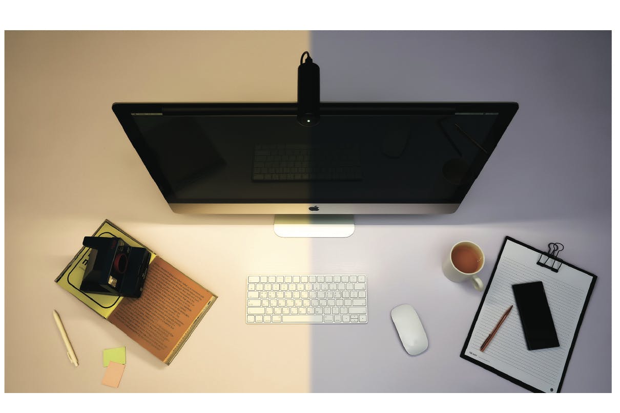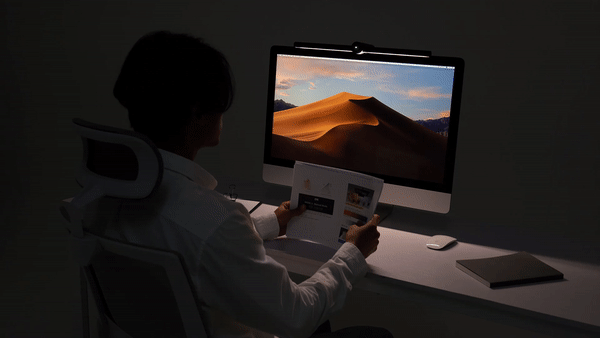 「ON」の照明がデスクだけを照らし、画面に直接光が届かないため、画面に反射されて目が眩しくなることはありません。
