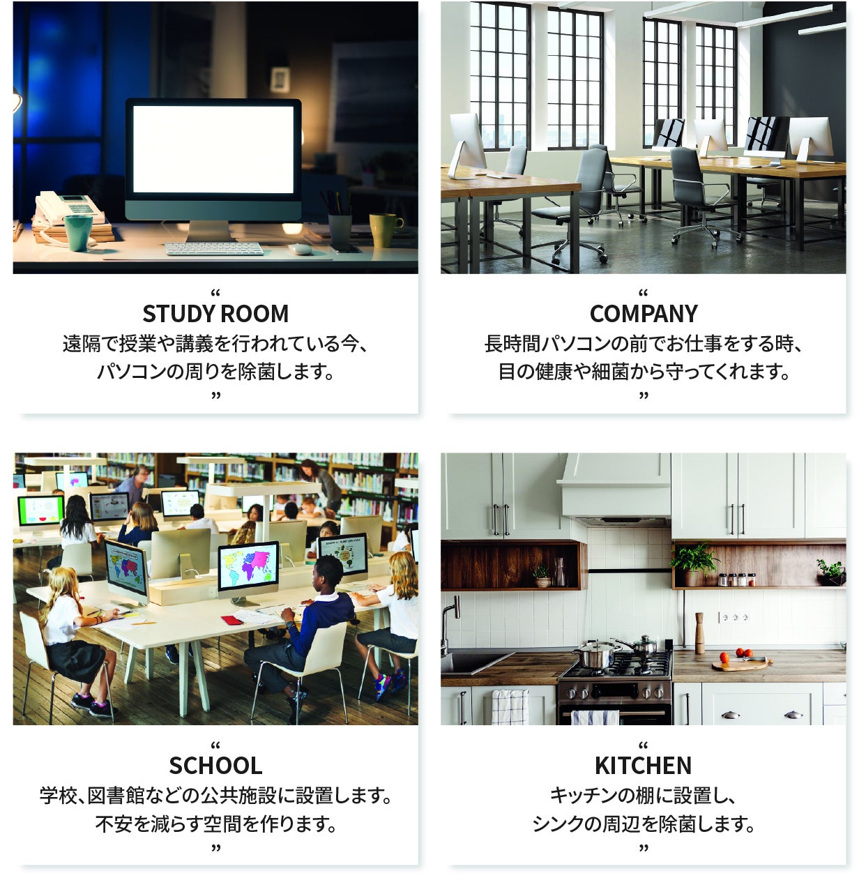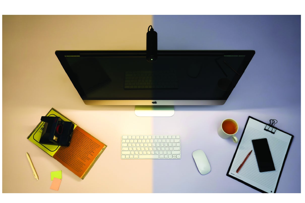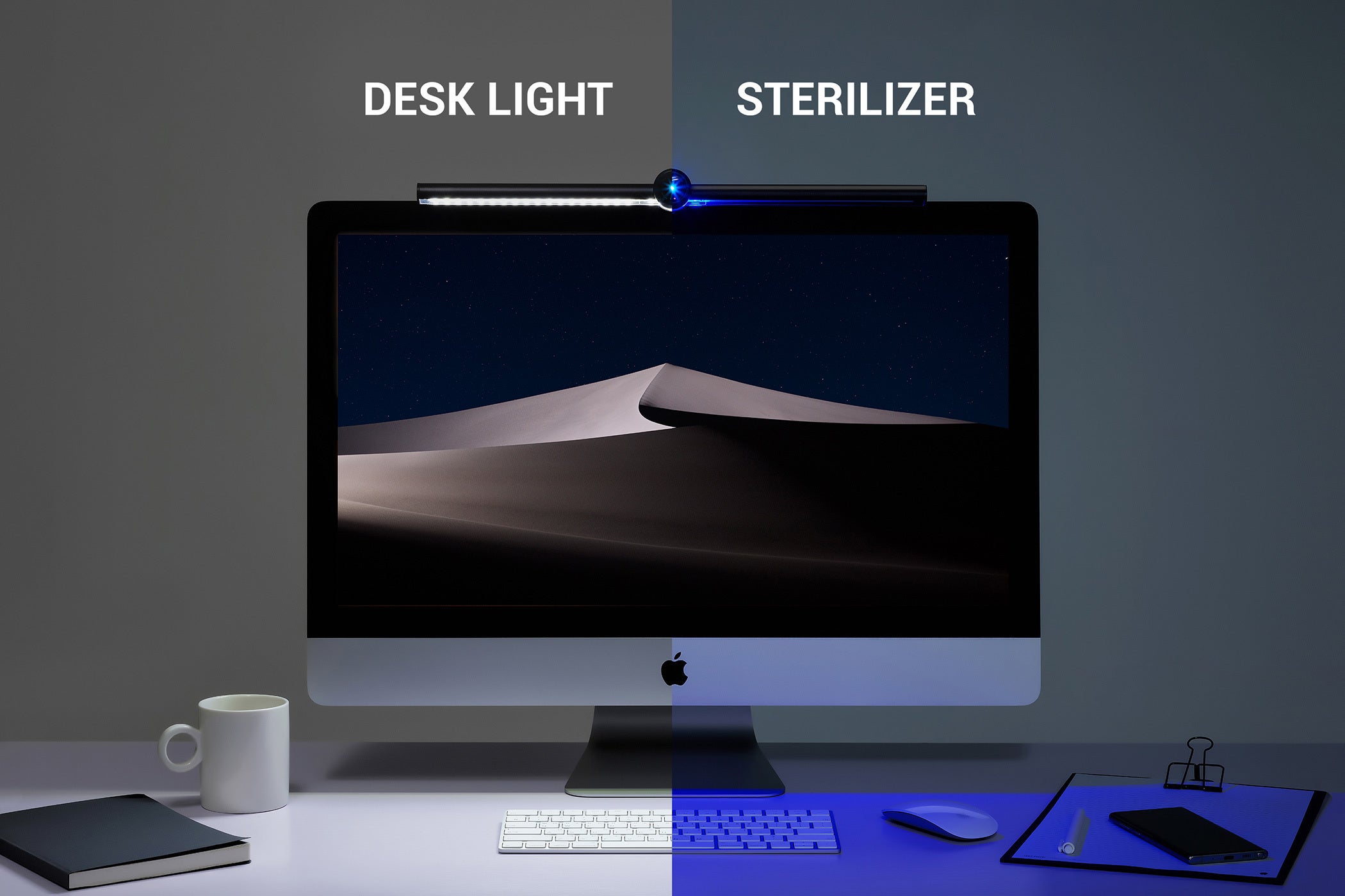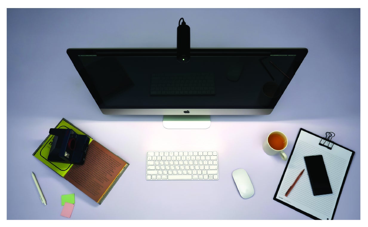あなたがデスクの前にいる間は机の上を優しく照らし、席を外すとセンサーが作動して1分後に自動除菌が作動します。