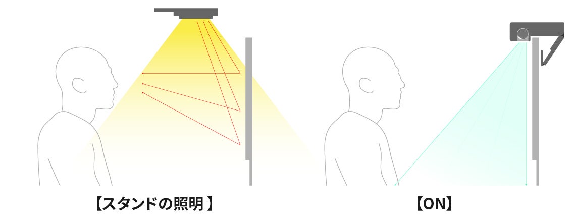 また「ON」は、非対称光学デザイン設計により照明がスクリーンに反射しません。