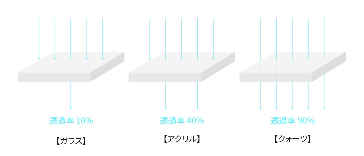 石英(Quartz)はUV-C波長の透過率を高め、除菌効率をUPします。