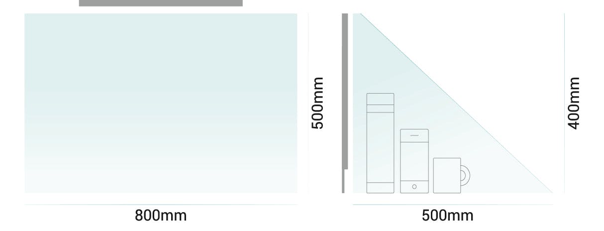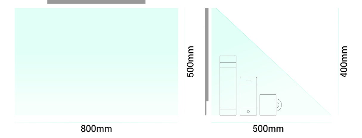 センサー中央から40cmは素早く除菌を完了し、中央からさらに40cm離れた領域までしっかりと除菌行います。