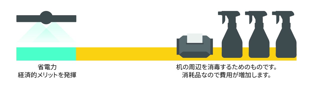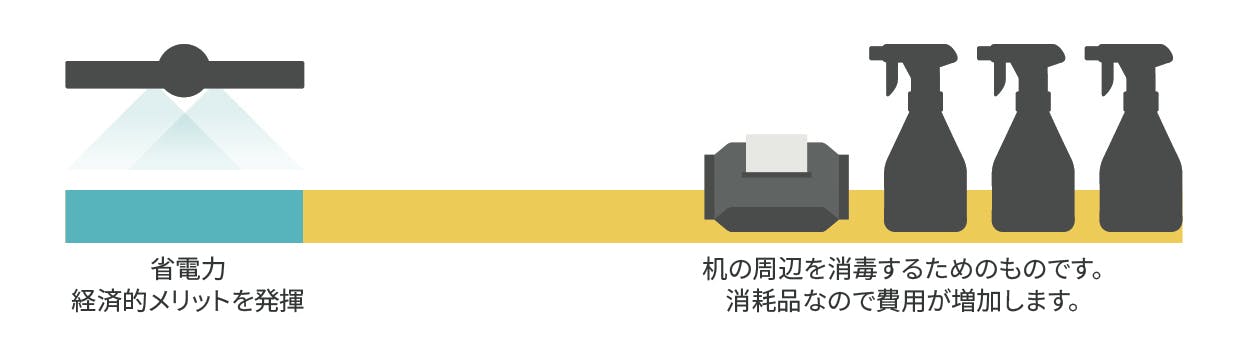 他の除菌アイテムと比べて、限られた狭い範囲だけではなく広い除菌面積で一度に机の環境を守ることができます。