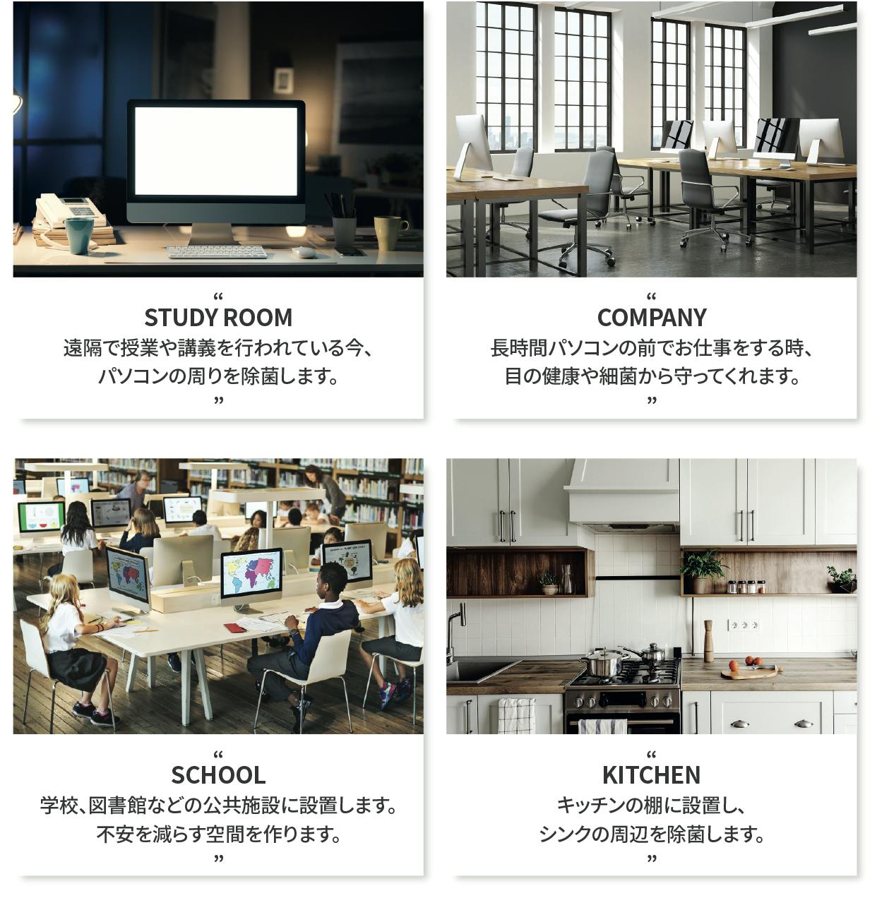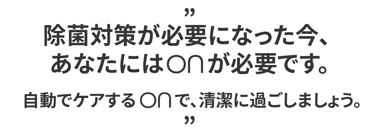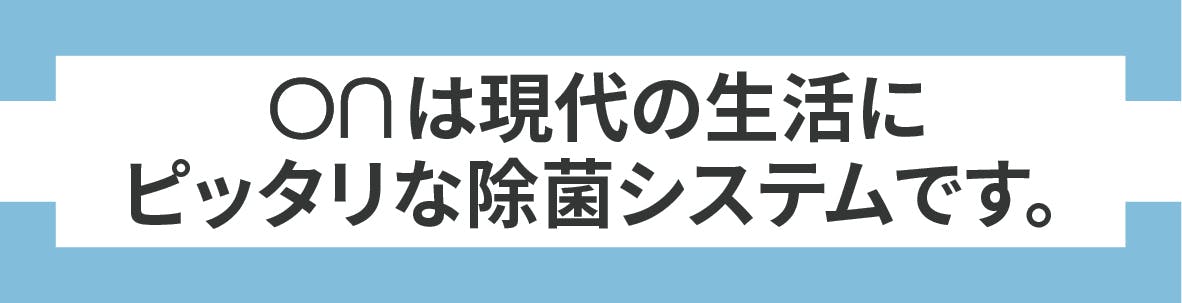 「ON」は半径横800mm×縦500mm内の広い範囲で物を除菌します。
