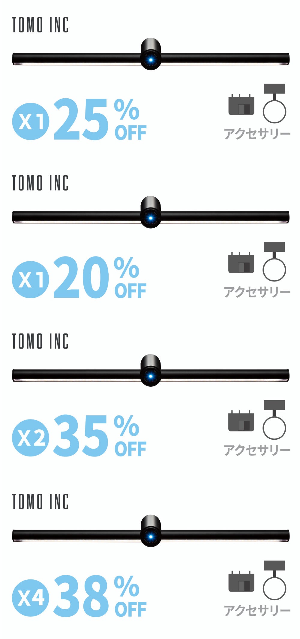 「ON」は30mW級UV-C LEDを40mm間隔で2本装備しています。