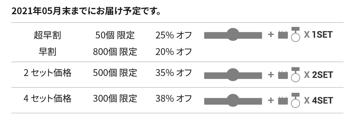 ◯ 引渡し時期: 各リターン詳細に記載の発送予定月を引き渡し時期とします。但し、開発・生産状況によって遅れが生じる場合がありますのでその際は当プロジェクトページ内の「活動報告」または購入者へのメール等で連絡します。
