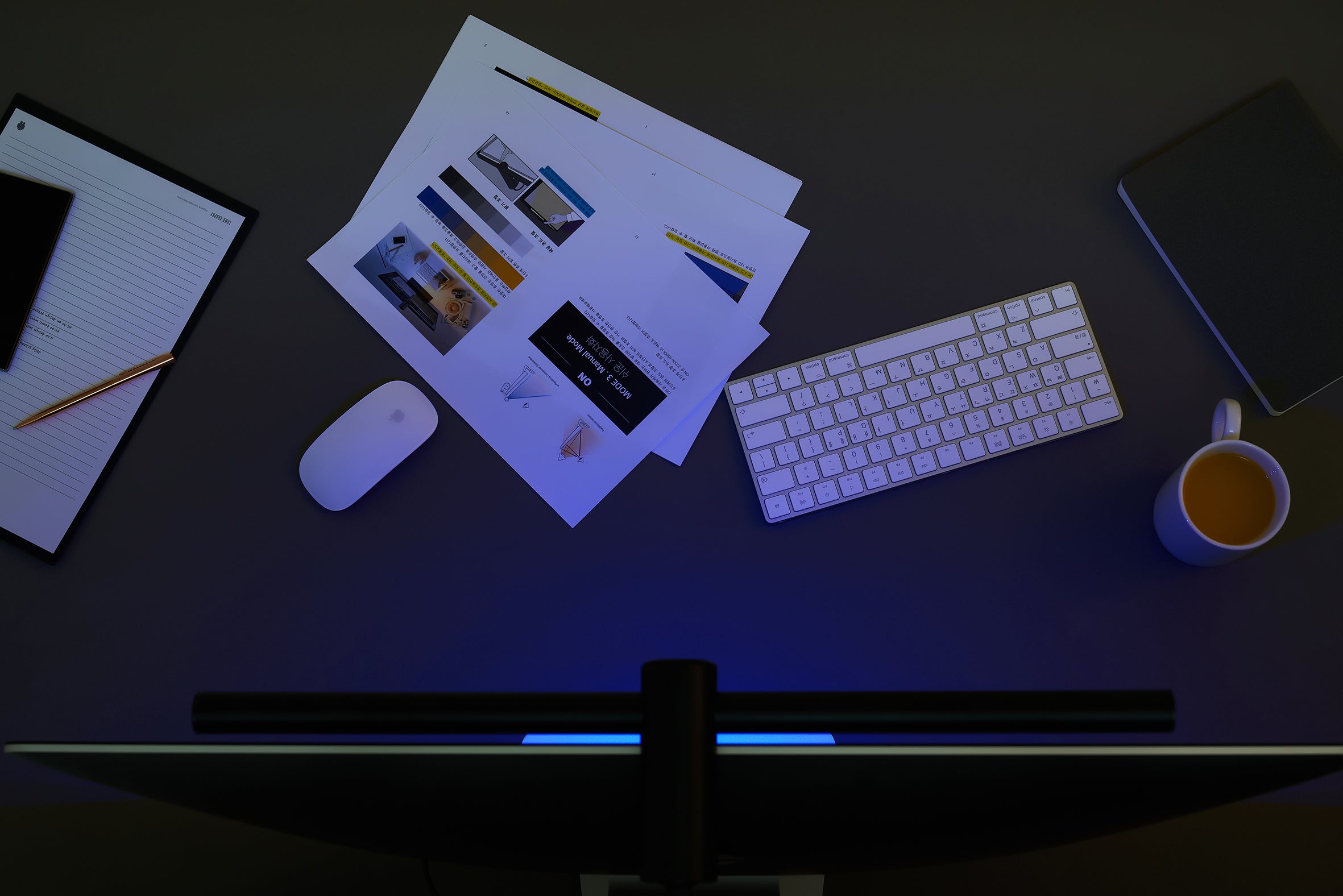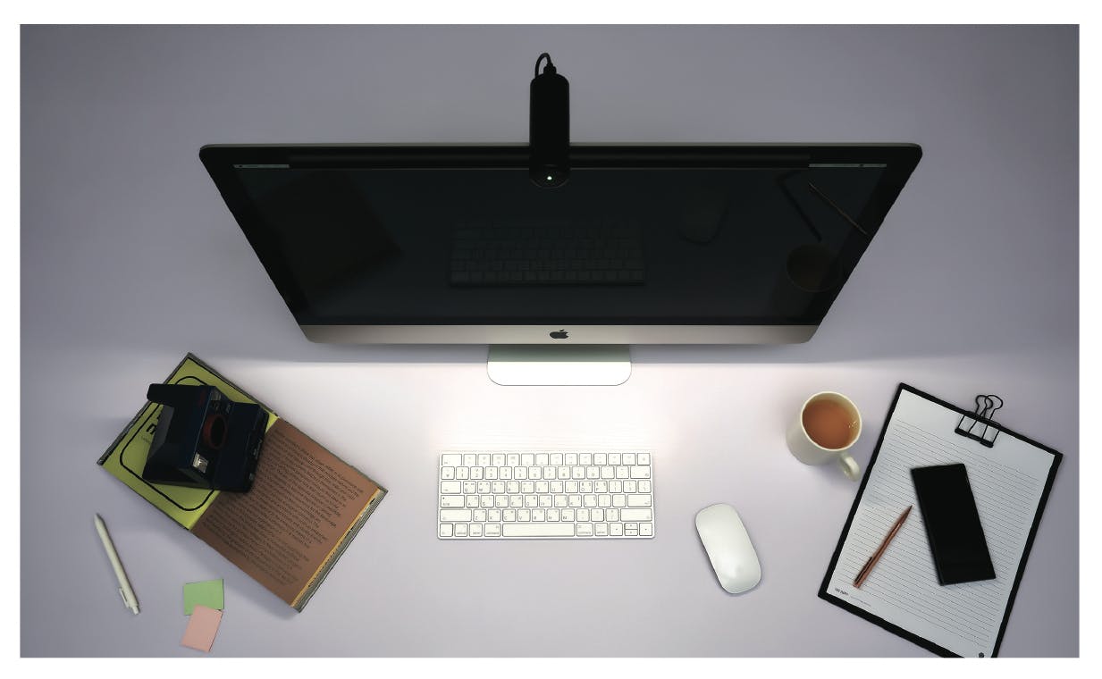 図の範囲内のスマートフォン、キーボード、ペンやカップなど、これまで見て見ぬ振りをしてきた生活空間をクリーンに保ちます。