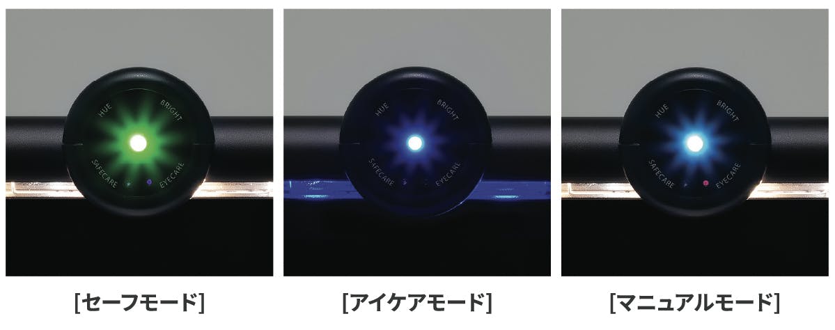 製品正面のLED表示灯で、現在の使用モードを確認することができます。