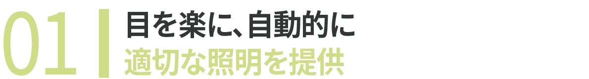 アイケアモード使用時、照度センサーで周辺環境を感知して適切な光量を提供します。 適切な光量は、ユーザーの目の疾患予防に役立ちます。 もちろん個人の好みに合わせた手動調節(マニュアルモード)も可能です。